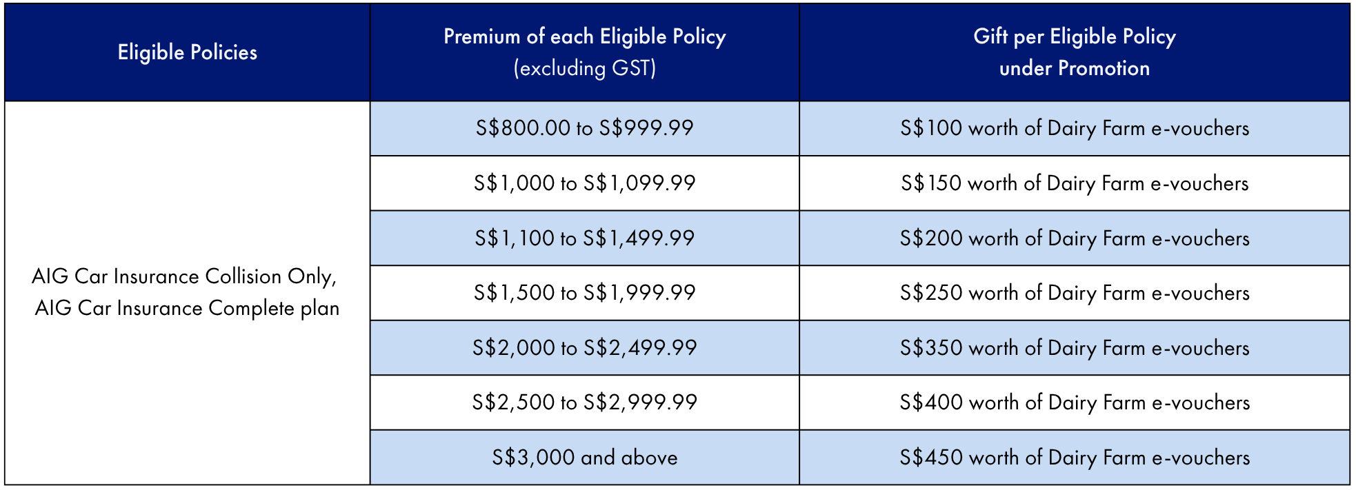 You will enjoy an excess waiver of up to S$1000 (i.e. if you qualify for the maximum excess waiver, you will only pay an excess of S$500) if: